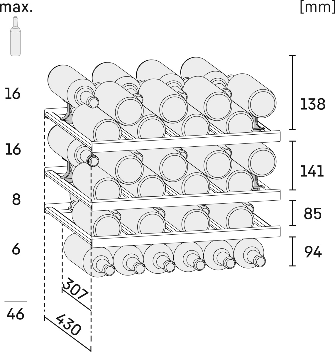 81.8x59.7x57.7 см, монотемпературный, вместимость 46 бутылок