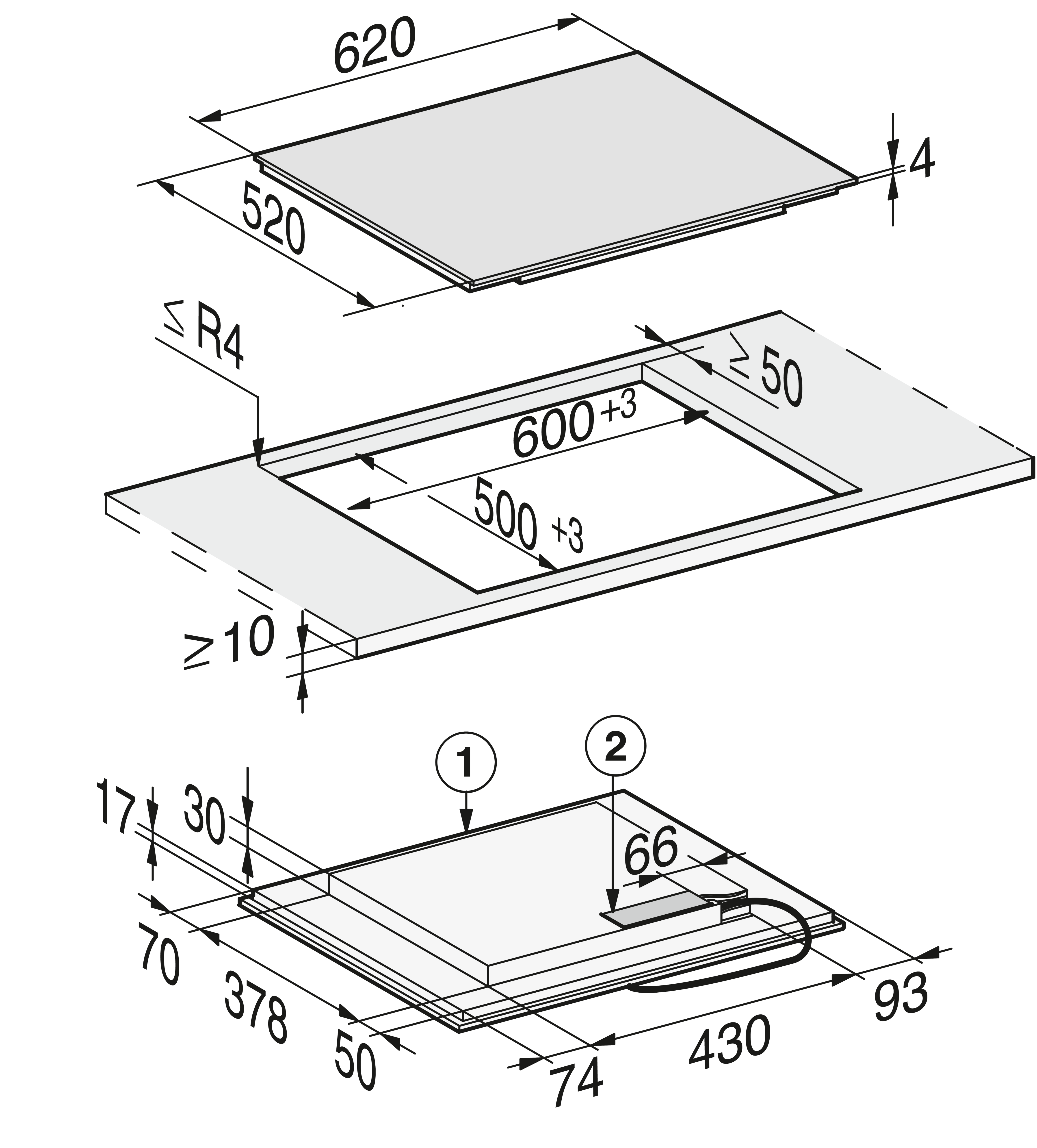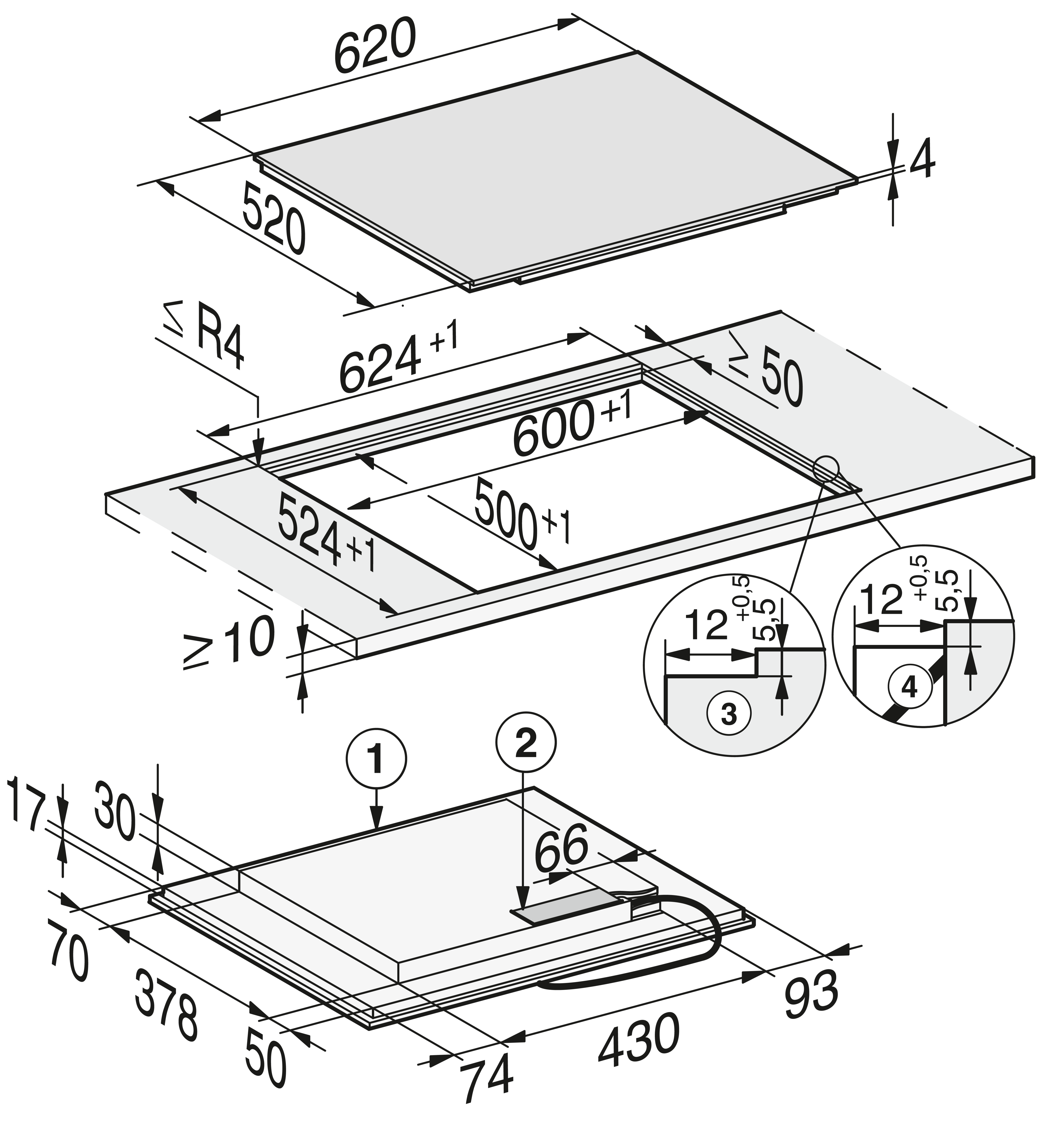 Внешние размеры выреза в мм (ширина) для встраивания заподлицо