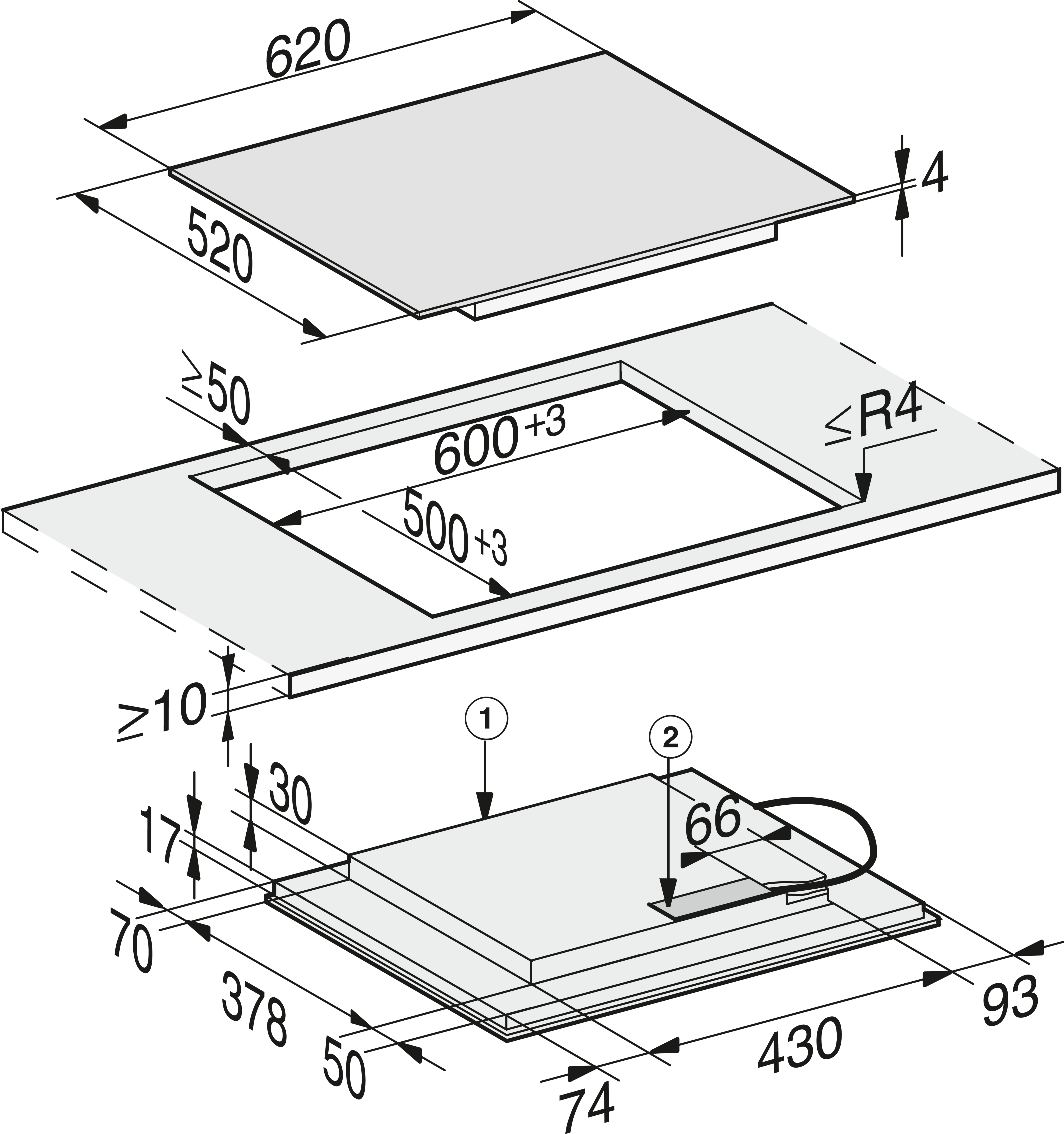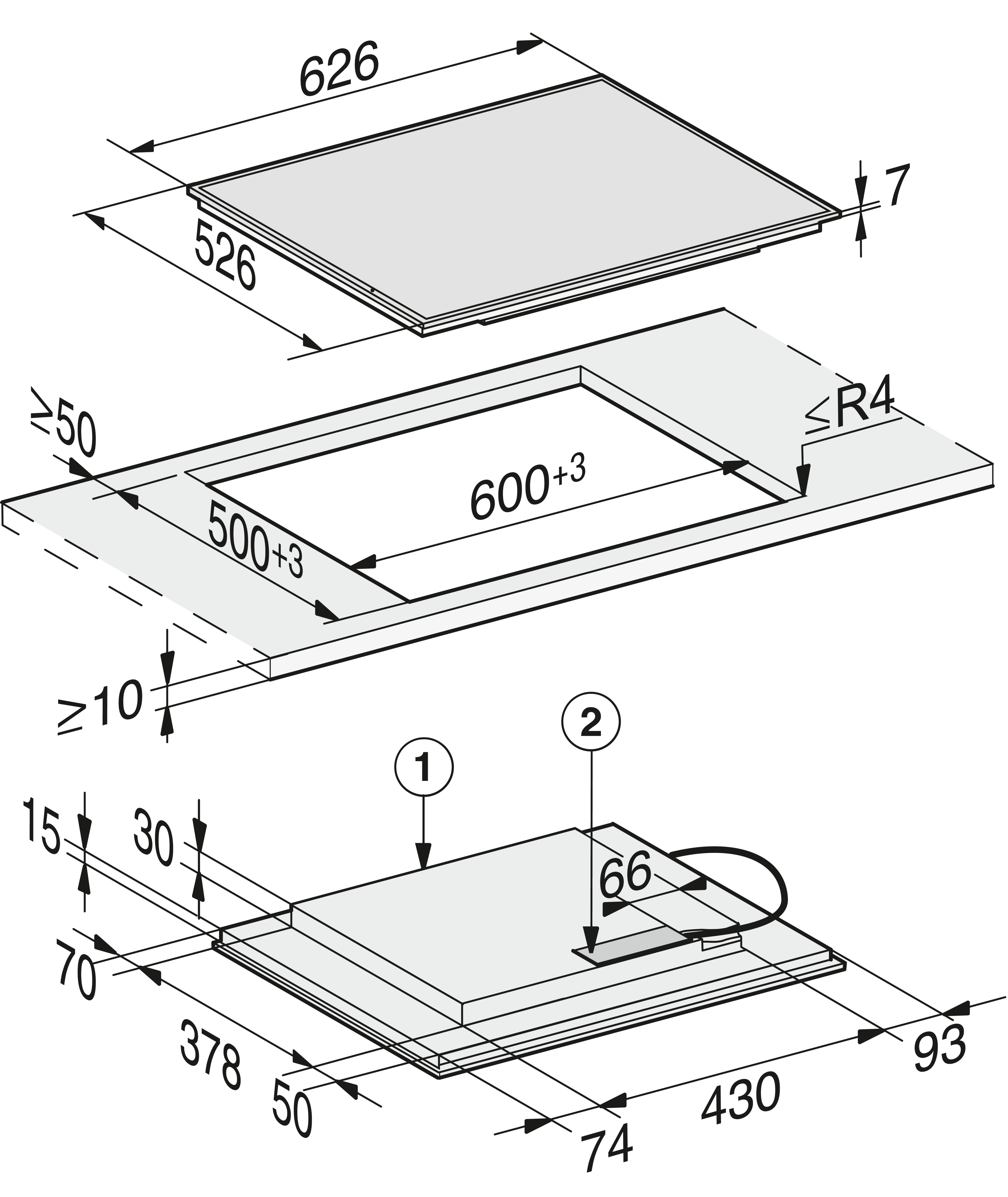 Внешние размеры выреза в мм (ширина) для встраивания заподлицо