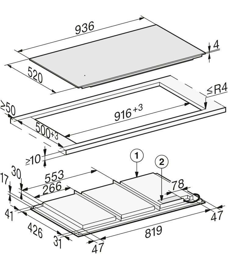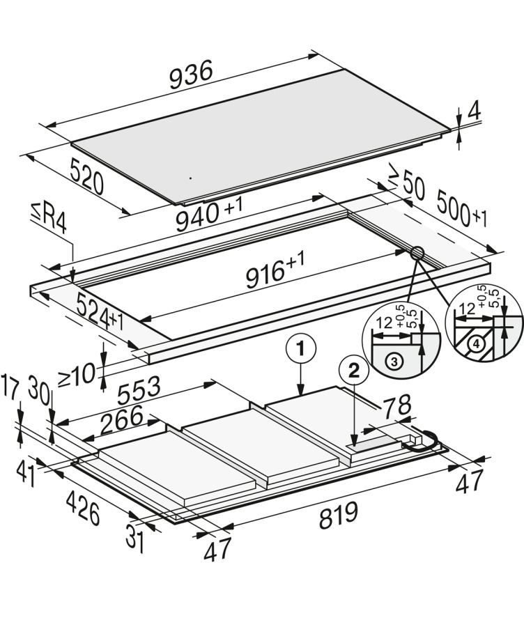Внешние размеры выреза в мм (ширина) для встраивания заподлицо