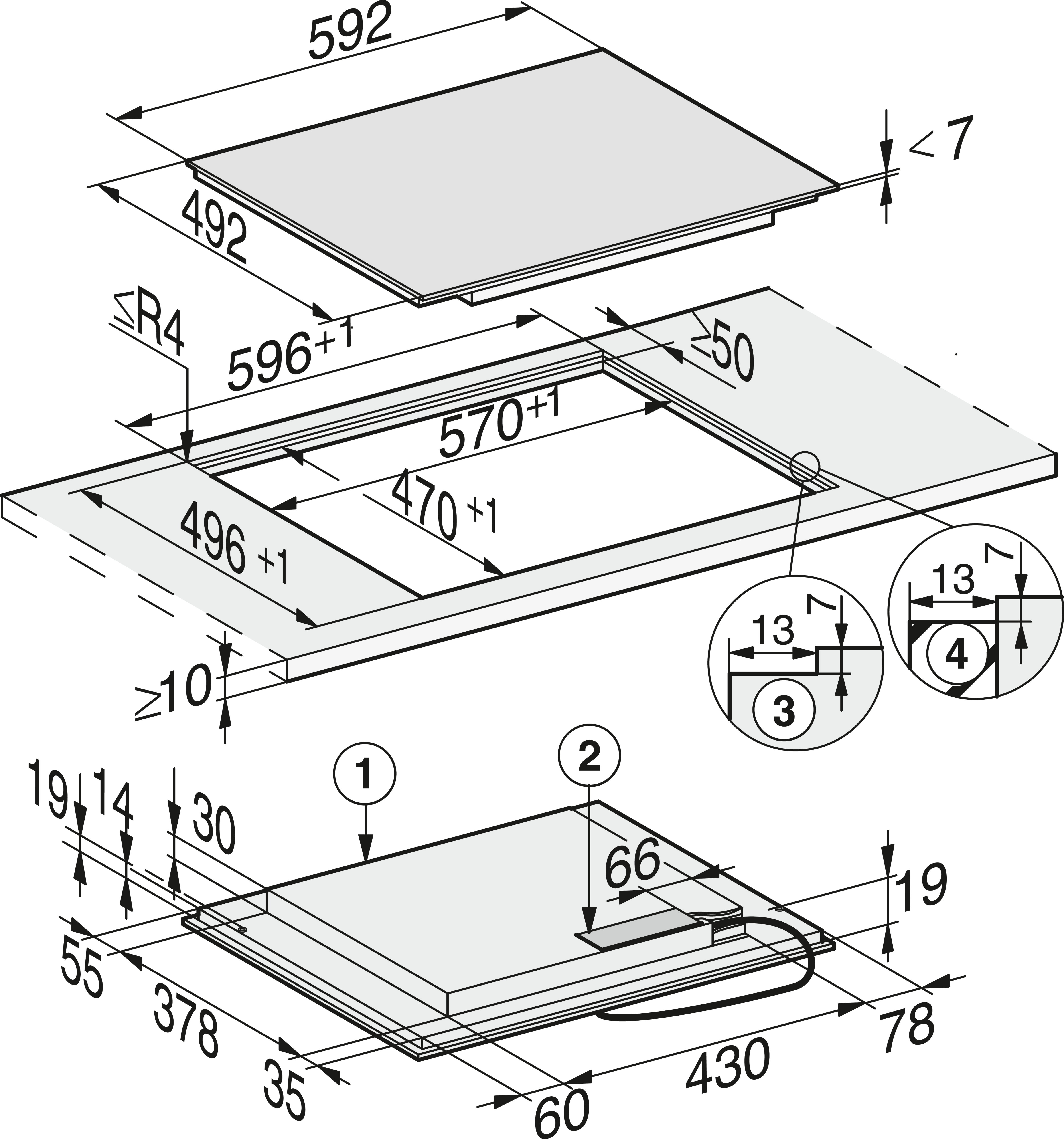 Внешние размеры выреза в мм (ширина) для встраивания заподлицо